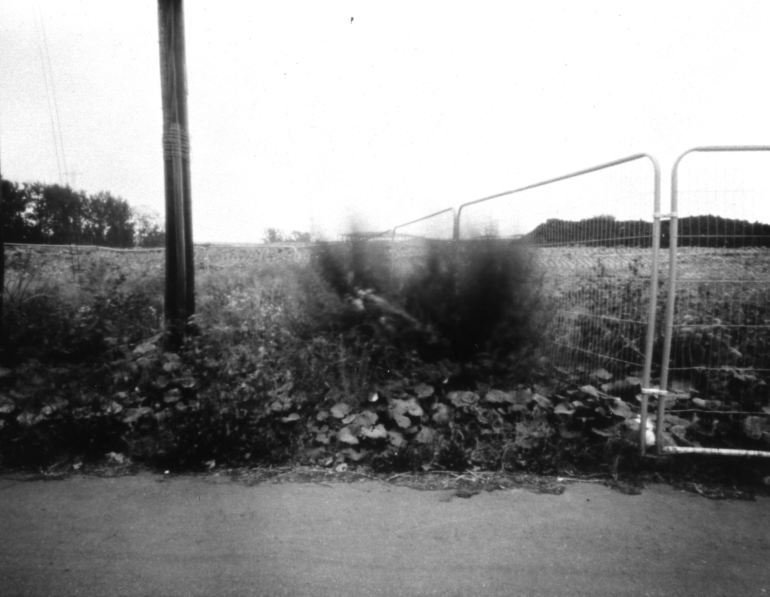 ‘Mugwort, of magic properties, next to the posts. Bright day, the new bank of the new earth in the shade now as the sun moves lower. You’re a blur, a long exposure and the wind. Your softness belies the roots that hold, and the posts, they fenced those off, protecting you from the earth movers, catapiller tracks, scraping.