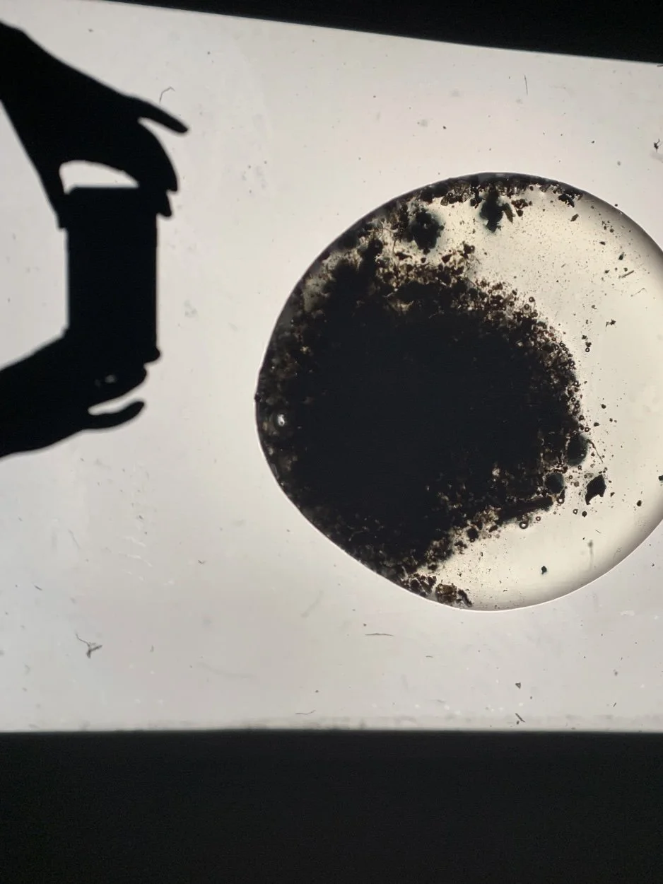 This feels like a progression in work, connecting two lines of working - the dust slides and mud from the rhynes. I think about sediment - in water, as sedimentation as a process of thinking and thought, and how earth and ice sections as core samples are made and read. Depth is time.