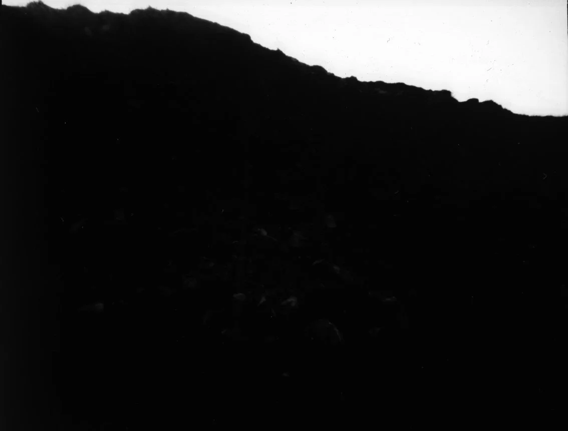 Work produced during residency at Cot Valley, St Just, Cornwall, January 2024. Working here during one of the darkest months of the year enabled me to consider darkness as a shared constituent condition of photographic and mining practices and legacies. Underexposed negatives became positive prints to suggest sub-terrarium voids.